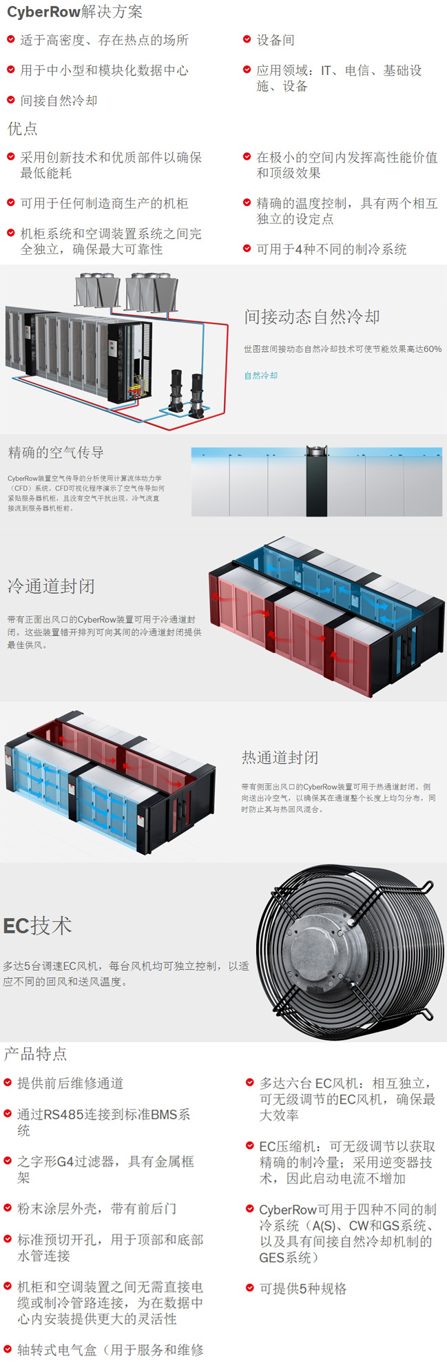 【史圖斯CyberRow系列行間空調(diào)】價(jià)格、參數(shù)CyberRow是用于高密度機(jī)柜定向制冷的空調(diào)裝置。CyberRow中利用最先進(jìn)的技術(shù)增強(qiáng)了創(chuàng)新的水平式空氣傳導(dǎo)方式,促進(jìn)其高性能、高靈活性和高效率。波動(dòng)的服務(wù)器機(jī)柜負(fù)載、空間限制、缺乏高架地板、現(xiàn)有的高密度服務(wù)器技術(shù)—這些日常實(shí)踐中的棘手