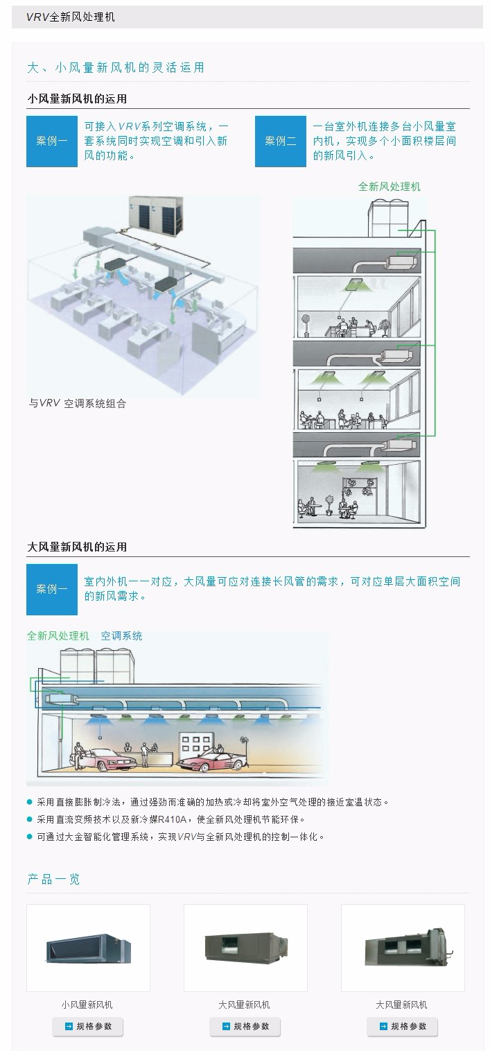 風(fēng)量從1080~6000m³/h的全新風(fēng)處理系統(tǒng),最高機外靜壓可達300Pa的VRV 全新風(fēng)處理機,秉承VRV 系統(tǒng)優(yōu)良品質(zhì),可對應(yīng)擁有不同新風(fēng)需求的多種空間,向用戶提供一個綠色生態(tài)環(huán)境,使身居都市的人們重返大自然的懷抱。