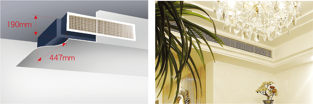 全系列產(chǎn)品機(jī)身厚度僅為190mm,進(jìn)深僅為447mm,可輕易安裝在高度較小、吊頂寬度較窄的場(chǎng)所,極大節(jié)省吊頂面積。