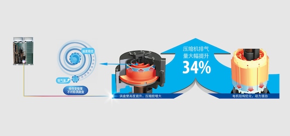三星針對(duì)中央空調(diào)使用與系統(tǒng)特點(diǎn),積累多年研發(fā)經(jīng)驗(yàn),為不斷改善壓縮機(jī)性能,為SUPER DVM S配備了性能優(yōu)異的高壓腔渦旋式直流變頻壓縮機(jī),融合氣液增焓等多項(xiàng)先進(jìn)技術(shù),采用不對(duì)稱(chēng)渦旋盤(pán)設(shè)計(jì),配合精密加工技藝,不斷提升產(chǎn)品性能。