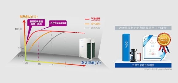 每一臺(tái)SUPER DVM S 產(chǎn)品的壓縮機(jī),都采用了三星高效的氣液增焓技術(shù)。通過(guò)抽取部分中間壓力冷媒,將主循環(huán)冷媒進(jìn)行過(guò)冷卻提高效率的同時(shí),顯著增加了壓縮機(jī)的排氣量,也有效抑制了排氣溫度過(guò)高,使系統(tǒng)在嚴(yán)寒氣候下制熱能力提升35%,在制冷時(shí)亦可增加10%-15%冷媒量,并自動(dòng)調(diào)節(jié)壓縮機(jī)頻率,有效提升系統(tǒng)滿(mǎn)負(fù)荷及低負(fù)荷工況下的系統(tǒng)效率。