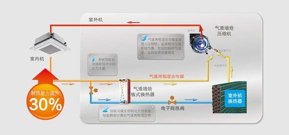 二級(jí)高效過(guò)冷卻回路,進(jìn)一步提升系統(tǒng)能力